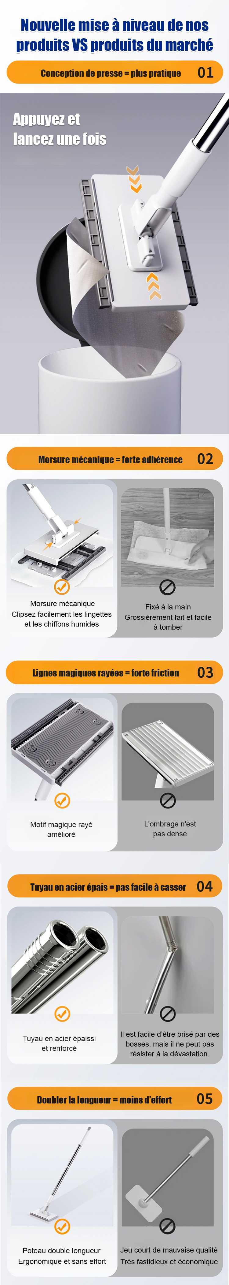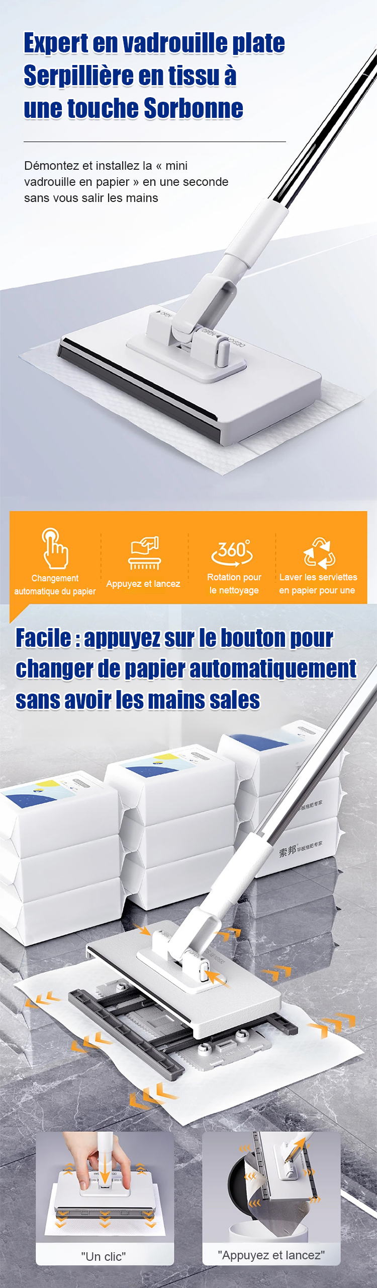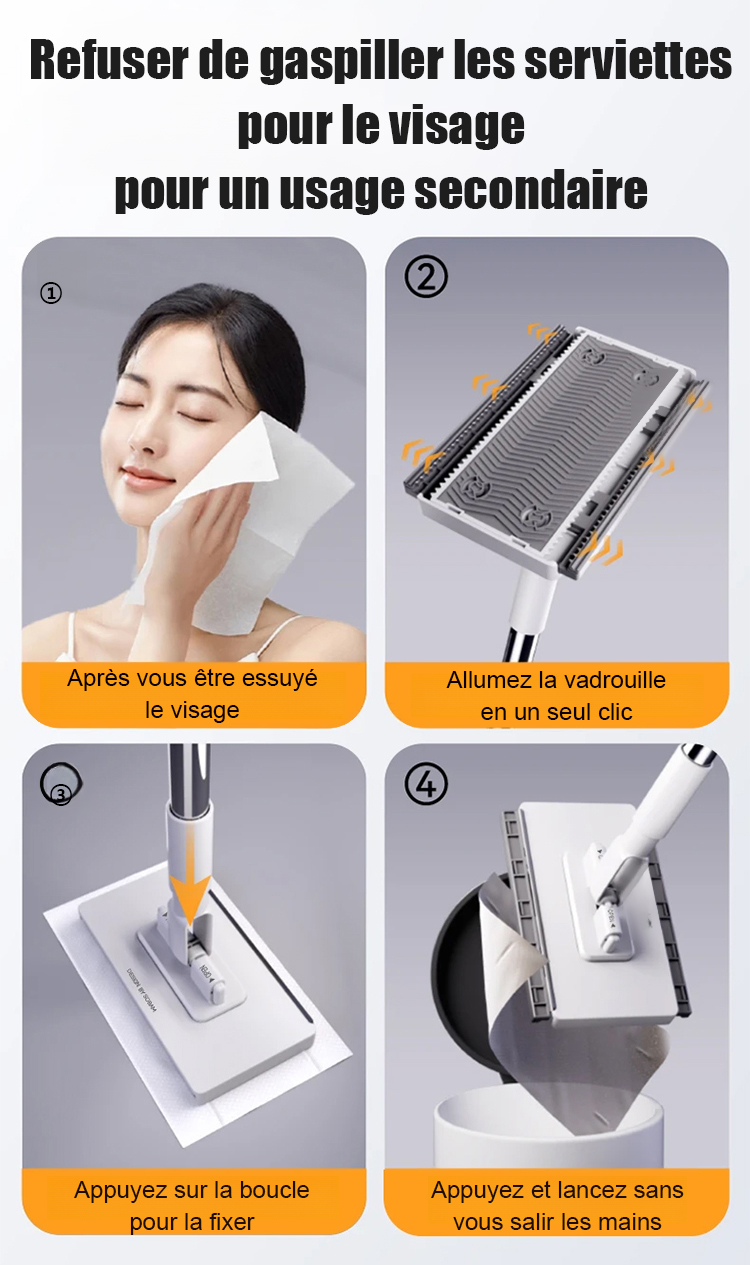 Économie d'effort 100 % Vadrouille paresseuse lavable à la main