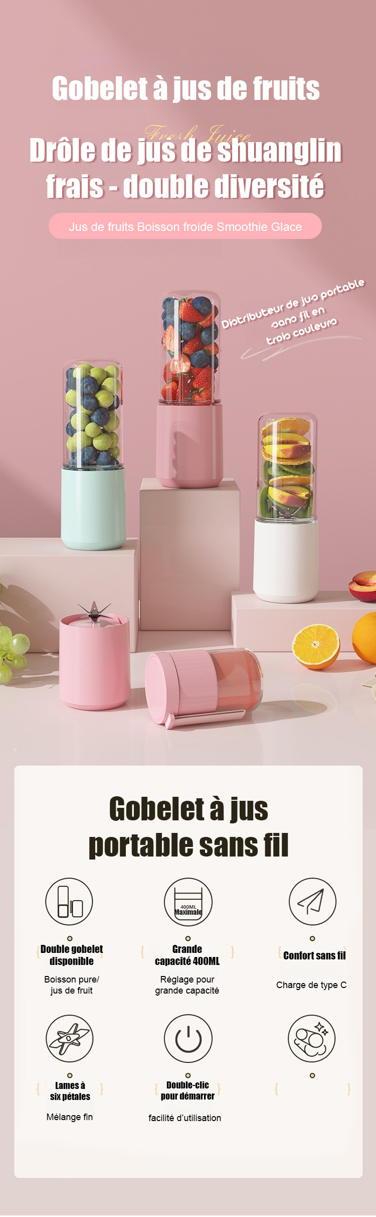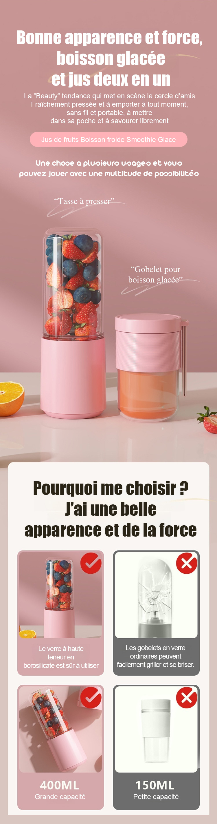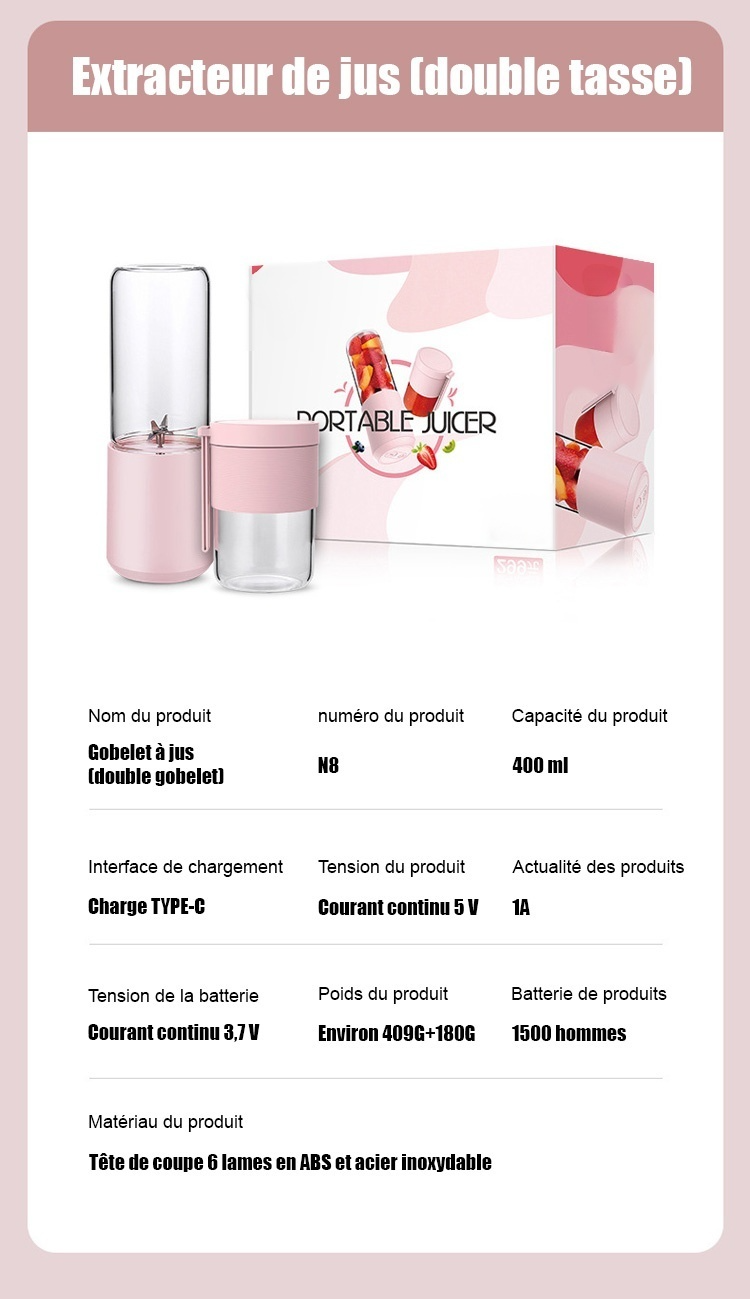 Tasse à jus portable et rechargeable