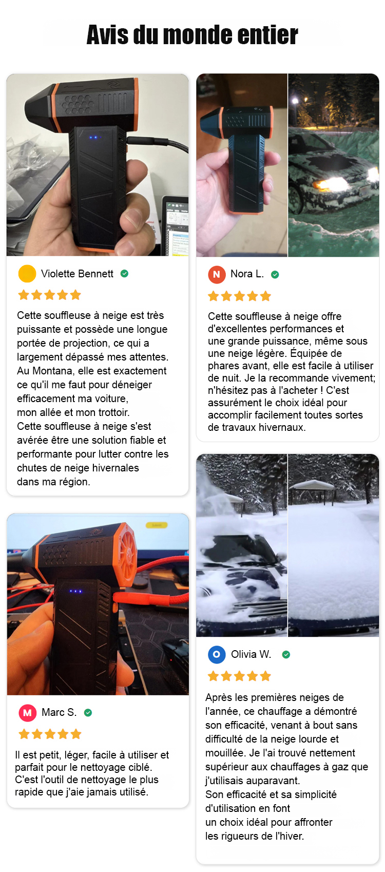 ✅ Conçu par un laboratoire d'ingénierie automobile allemand : déneige en 10 secondes. ✅ Propulsé par une turbine d'avion de 150 000 tr/min : fait fondre 10 cm de glace en 30 secondes. ✅ L'outil idéal en toutes saisons : déneigement hivernal ; sèche en 30 secondes après lavage et se gonfle facilement. ✅ Commandez dès aujourd'hui et bénéficiez de 50 % de réduction ! Offre limitée dans le temps, profitez-en vite !